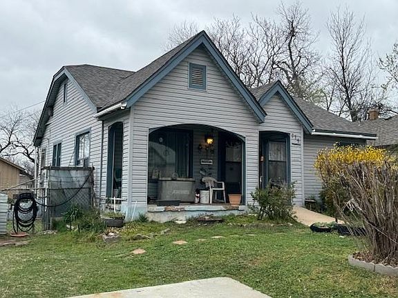 House has lots of charm, needs some love, but has brand new shingles as of end of February!! Nice sized living room and dining room with pretty natural light, will need stove, fridge and new water heater, sits on a pretty lot, has nice large forsythia bush and rose bushes next to walkway to covered front porch. Large storage shed in backyard, chain link fence. Has been occupied for a long time, owner loved it but is starting a new chapter. Call Coldwell Banker Salute 580-713-2500 with any questions or to schedule a showing.