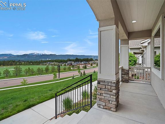 Sanctuary Pointe Stunner with Unmatched Pikes Peak + Mountain Views! Experience effortless Colorado living in this thoughtfully designed ranch-style home, nestled in the heart of the coveted Sanctuary Pointe community. Perched on a premium lot adjacent to open space with captivating vistas, this retreat blends elevated style with everyday comfort. Step inside to an open-concept layout graced with luxury vinyl plank flooring, soaring ceilings, and abundant natural light. The gourmet kitchen is a true showstopper—featuring Café stainless steel appliances with a gas range, striking stone countertops, upgraded cabinetry, a walk-in pantry, single basin sink, and an oversized island perfect for casual mornings or evening entertaining. The adjacent dining area opens through sliding glass doors to a private, courtyard-style 11x11 covered patio—an ideal spot for quiet morning coffee or enjoying cool Colorado evenings. Anchoring the great room is a custom picture window that perfectly frames breathtaking views of the iconic Pikes Peak and Front Range, bringing the outdoors in. The spacious primary suite is a peaceful sanctuary with more incredible views of Pikes Peak, a large custom walk-in closet, and a beautifully finished ensuite with designer tilework. Two additional bedrooms, a full bathroom, and a laundry room complete the intelligently laid-out main level. Built in 2021 with a 2-car garage and radon mitigation system already in place, this home offers both modern assurance and timeless appeal. Just steps from Sanctuary Rim and a neighborhood trailhead, and moments from Fox Run Regional Park—offering over 400 acres of forested trails, scenic overlooks, and picnic spaces—this location is perfect for outdoor enthusiasts. You’ll also enjoy close proximity to an abundance of shopping, dining, and entertainment options, plus quick access to I-25 for effortless commutes to Denver, Colorado Springs, and the Air Force Academy. This is Colorado living at its finest.