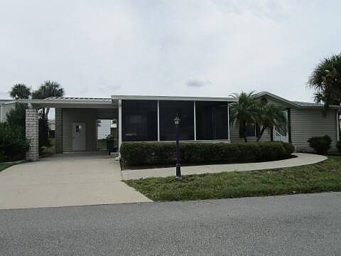 Discover comfortable, resort-style living in this well maintained 2-bedroom, 2-bath manufactured home with a spacious 1,422 sq. ft. of open-concept living space. The kitchen is equipped with abundant cabinetry, a large pantry, plus an indoor laundry. Recent upgrades include a new disposal and sink fixture '23, brand-new shingle roof '23, completely repainted exterior trim '24. This home also features all GE appliances, a Rain Bird sprinkler system, 10 x 18 front Screen room, 8 x 8 storage shed, C/H/A '20, and a 2-car driveway. The master bedroom and guest bedroom are separated by the spacious living area for added privacy. The porch furniture, and 2 glass tables/chairs are included. Windmill Village is an elite retirement community offering golf, fishing, an 8000 square foot clubhouse, swimming pool, spa, horseshoes, tennis, shuffleboard, card room, pickleball, arts/crafts room, and a state-of-the-art exercise and fitness center. Located in the heart of Florida, just minutes from Walt Disney World. Lot rent - $846. Call Jean to schedule a viewing of this delightful home.