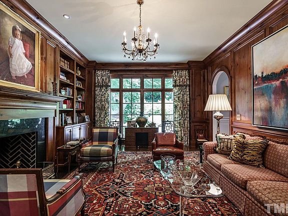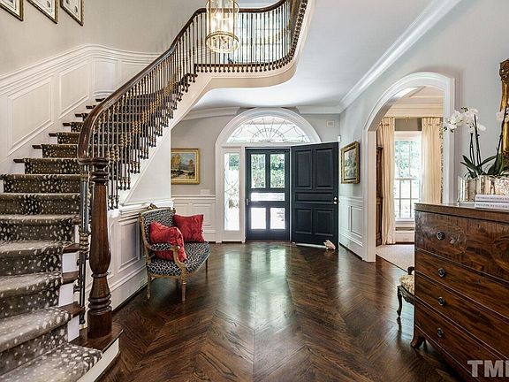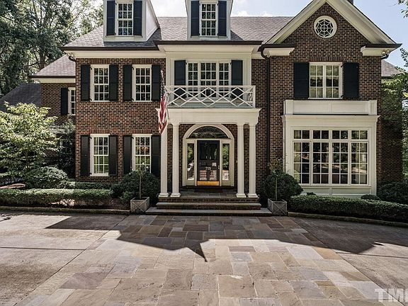 One of Raleigh's finest! Masterfully designed by Deborah Hensley and Carter Skinner, this magnificent brick two-story with full basement is without equal - sited on 1.39 pristine acres, the architectural integrity, craftsmanship and scale are unsurpassed - a gracious entry foyer flanked by large formal areas, study, state-of-the-art kitchen and spa-like MBR retreat overlook the rear terrace with water views below - the lower level features guest suite with game room/wet bar/exercise room- exceptional!