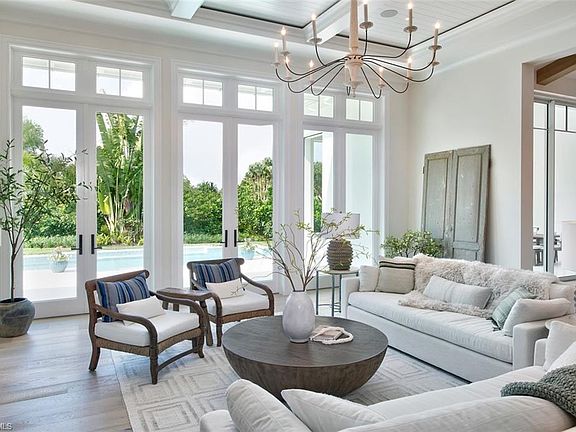 Indulge in the epitome of coastal living at this award-winning Naples retreat, boasting the prestigious 2022 Sand Dollar Award. Experience seamless indoor-outdoor transitions with sliding pocket doors leading to the open-air lanai—a dream setting for entertaining. Bathed in natural light, this home features high windows and ceilings throughout, accentuating its airy allure. Exceptional millwork and wide plank oak floors complement the elegant Ruffino cabinets, creating a timeless aesthetic. Designed by Stofft Cooney and built by Van Emmerik Custom Homes, this residence offers a chef's kitchen equipped with Subzero refrigerators, a Wolf Steam Oven, and a Bertazonni stove/oven. Five bedrooms plus an office provide ample space, while the two-car garage and a climate-controlled single garage offer versatility. Outside, enjoy the 46-foot saltwater pool and spa amidst landscaped grounds. Situated at the end of a quiet cul-de-sac in Pelican Bay, amenities include private beach clubs, tennis, pickleball and proximity to Waterside Shops and Artis-Naples. Live the lifestyle you've always dreamed of—schedule your private tour today.