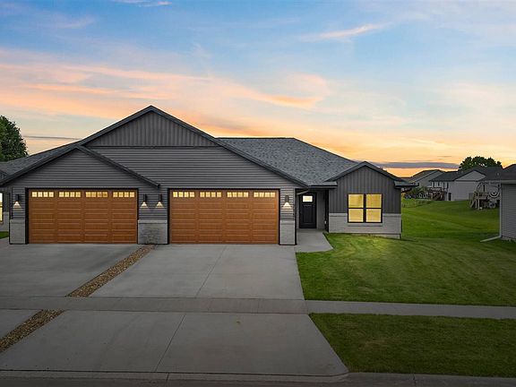 Beautiful new construction zero-step entry home in Harvest Hill! From the foyer you will walk into the spacious great room featuring a cathedral ceiling, electric fireplace with shiplap surround, and open staircase to the lower level. The kitchen features an abundance of soft closing dark cabinetry, under cabinet lighting, ceramic tile backsplash, quartz countertops, & stainless steel appliances. Enjoy the fantastic countryside view from the sliding glass doors leading to the oversized deck with stairs to the ground. Private primary bedroom and bathroom with a tiled walk-in shower and large walk-in closet. Second main level bedroom also features a walk-in closet and is conveniently located near the second full bathroom featuring a deep soaking tub with tile surround. Main level laundry/mud room with built-in soft closing cabinets leading out to the 2 car attached garage. Spacious sun-filled lower level family room, 3rd bedroom, and 3rd full bathroom. Huge unfinished storage area!