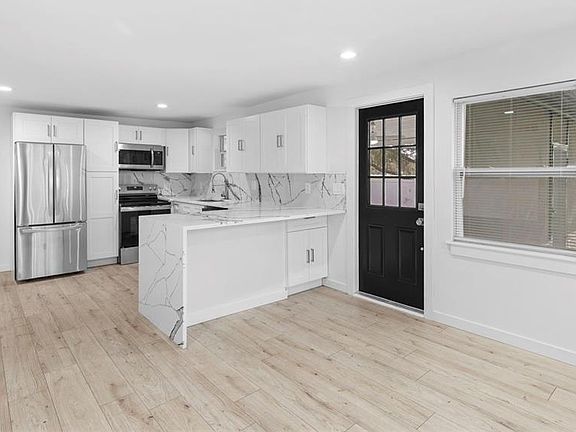 Spacious bathroomOversized backyardElegant quartz countertopsSleek vinyl flooringStainless steel appliancesDouble sink vanitySleek glass shower door