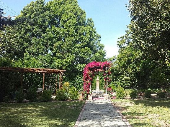 Very private and serene environment welcomes you to this beautiful Spanish Mediterranean style 2nd floor guest house above the garage with private entrance and gated carport parking area for one car. Unit includes private patio area to view the surrounding gardens. Views of nature from any window...no prying neighbors in sight. Large at approx. 730 sf taped. Walk-in wall to wall closets central HVAC stainless steel appliances stained wood and glass kitchen cabinetry granite countertops with tiled backsplash hardwood floors jetted tub and shower. Washer/dryer in until will be provided. 1800 includes utilities for one occupant (water gas electric internet/Wi-Fi). 150 additional fee for 2nd occupant. Utilities included in price for 1 occupant. Additional utilities charge for each additional occupant of $100. Security deposit is 1-2 mths depending on credit worthiness. Laundry available at extra charge.