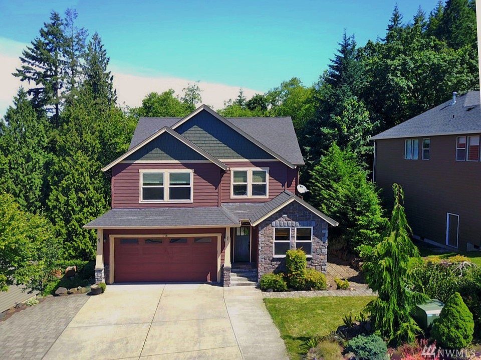 As immediate as walking through the front door this home will leave an impression. Soaring ceilings, floor to ceiling rock fireplace, beautiful hardwood floors & grand staircase. Formal dining room, kitchen w/eating nook, granite slab counters, bar & ss appliances. Master suite has heated tile floors, jetted tub, walk in closet and private deck. Downstairs is where the fun happens, Family room, media room & access to the back yard w/fire pit & horse shoe pit. Back yard backs up to green belt.