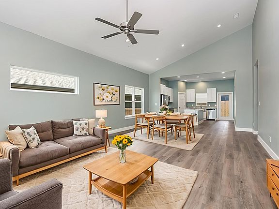 Don't miss this opportunity to own a brand-new, energy-efficient home built with high-quality materials and thoughtful design. This home offers a functional split floor plan with Smart Home technology, vaulted ceilings, and spray foam insulation for year-round comfort and savings. The kitchen features solid wood cabinets with soft-close hardware, quartz countertops, and stainless steel appliances, all tied together with durable SPC wood-look flooring throughout. The exterior combines limestone and Smart Siding for both style and longevity. Enjoy a fully landscaped yard with a sprinkler system, a covered back porch, and a full privacy-fenced backyard. Whether you're looking for a comfortable primary residence or a strong long-term rental investment, this home checks all the boxes.