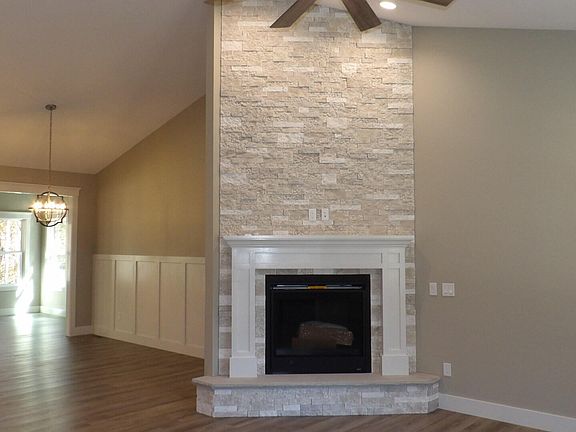Quality built 3 bedroom, 2 bath home with cathedral ceiling in living room and a gorgeous gas fireplace that catches the eye from the front door entry, living room is open to the dining room with wainscoting on wall, and open to the beautiful kitchen with white cabinetry, double stacked upper cabinets with glass door and lights, built in pantry with pull out shelving, the island is a soft green to compliment the Fantasy Brown granite and tile backsplash, the island has storage on both sides, Frigidaire Gallery appliances, luxury vinyl plank flooring throughout the home with ceramic tile in the utility and baths. The master bedroom features a coffered ceiling, pocketdoor entry ensuite with double vanity and walk in tile shower with rainfall shower head, walk in closet with custom shelving. 2 guest bedrooms and bath on the opposite end of the home each featuring custom closet shelving. Spacious sunroom with large windows for natural lighting gives access to the screen porch with tongue & grove ceiling and open deck. Tankless water heater in the 2 car garage and concrete drive.