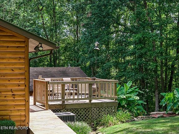 Tucked away on six serene acres, this beautifully updated 2-bedroom, 2-bath home is a nature-lover's haven. Follow the long-paved driveway past mature trees to a private retreat complete with a flowing creek, waterfalls and a mile of walking trails that meander through the woods- all just steps from your back door. Step inside to discover rustic elegance throughout. The home has been completely modernized with new log siding, updated wiring and plumbing, a metal roof, new windows, new garage, front door, sliding glass doors and HVAC. Enjoy the warmth of '' hickory hardwood floors and a striking floor to ceiling wood-burning fireplace in the great room. The custom kitchen is a standout, featuring custom made hickory cabinetry, granite counter tops, stainless steel appliances, and a charming bay window. The main bathroom offers a spa-like escape with a walk-in-shower and soaking tub, while the full walk out basement has two bedrooms and a full bath plus a 1-car garage (18x21)