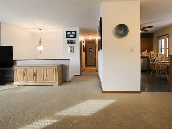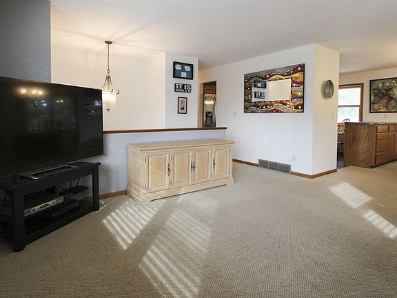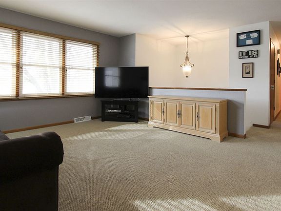 Warm and inviting describes this great split foyer home from the moment you enter! The entry opens to the spacious living room that features a brick, wood burning fireplace that anchors this space. This large room features great light from multiple windows. You will love how this room flows seamlessly into the formal dining area that will be great for entertaining. As the weather cools and entertaining turns indoors, this will be perfect spot for family and friends to gather. The flow continues into the fantastic gourmet kitchen that features honey colored cabinetry, under cabinet lighting and a gorgeous stone tiled back-splash. Also featured is a pantry with roll-trays, a generous eat-in area, direct access to a huge deck and a peninsula with additional storage! This kitchen is one to see! The main floor features three spacious bedrooms and large main floor bathroom. The master bedroom also includes a half bath featuring solid surface counter-tops. There is room to roam as the lower level offers a great family room, offering wainscoting, built-in shelving and a desk area. With another full bathroom and laundry area in the lower level, living is easy here. The exterior amenities of this home include a two stall attached garage with workshop area, a large deck with built-in seating and huge yard. You will enjoy the deck and the large open spaces which are perfect for entertaining. This home is waiting to be yours!