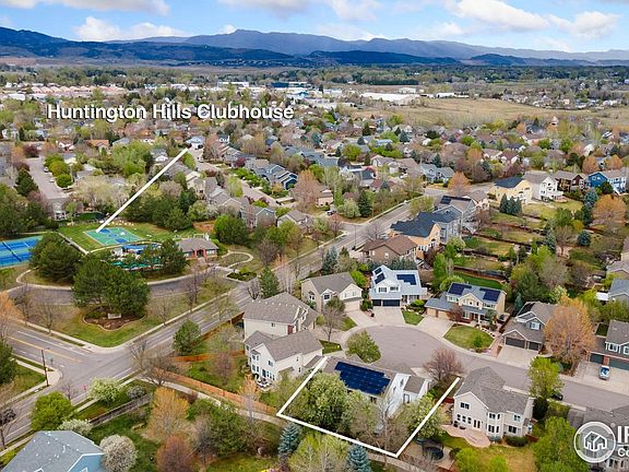Don't miss all the perks of the Huntington Hills community, including a neighborhood pool, clubhouse, tennis courts, and basketball courts. Tucked away on a quiet cul-de-sac in southeast Fort Collins, this one owner 4 bed/3 bath home offers spacious living and thoughtful updates. The bright, open floor plan features hardwood floors on the main level and large windows allowing in the natural light. A generous 2 story family room anchored by a stunning two-sided fireplace creates a warm and welcoming. Updated kitchen complete w/ granite countertops, gas range, SS appliances, walk-in pantry, and center island. The main level also includes a formal dining room with new hardwood floors, a dedicated office with new carpet, and a versatile bedroom adjacent to a 3/4 bath - ideal for guests or multigenerational living. Upstairs, retreat to the spacious primary suite w/ a bay window, five-piece bath, and dual sinks and dual closets. Two additional bedrooms share a full bath, and a large loft provides additional flexible living space. The finished basement complete with a bar, bar fridge and microwave. Enjoy the fully fenced private yard with oversized deck. Just a short walk to Fossil Creek Park, Southridge Greens Golf Course, walking trails and convenient to shopping and dining-this home delivers location, lifestyle, and livability. Solar Panel lease to be assumed by Buyers.
