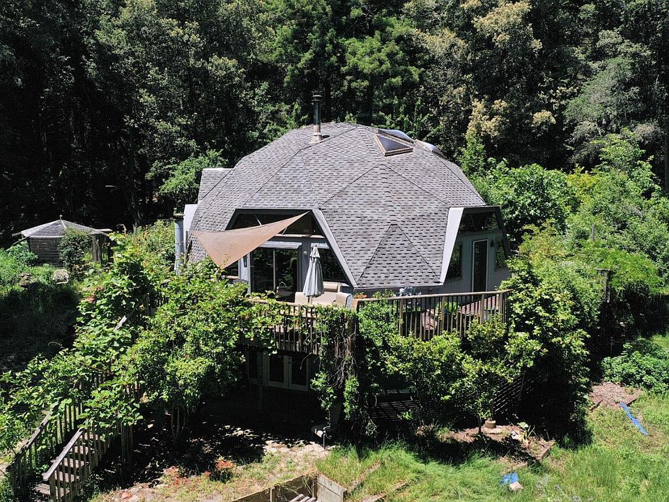Magical property feeling like a retreat in the beautiful Aptos Mountains. Trilevel Geodesic Dome home on 13 acres. Seasonal pond, walking trails on the property. One trail makes a loop on property. The other trail leads to Nisene Marks Park to 5 finger falls. There are two fire circles for gatherings. There is also an area cleared for camping fitting up to 15 tents. Many outside sitting areas to enjoy nature, one sitting area just for sunsets. Two wood burning stoves, one in main house and one in the recreation room. Tuff shed is watertight and rodent proof 120 sq. ft. plus a loft with an attached covered deck for projects. Play structure and picnic area near the house. Whole house generator for winter use. Two 5,000 gallon tanks, one for potable water and one for rain water storage. 1927 Wedgewood stove included in the sale for your cooking delights. Critter proof aviary near to the enclosed garden. You must walk the property to appreciate the uniqueness of the parcel and envision living with nature