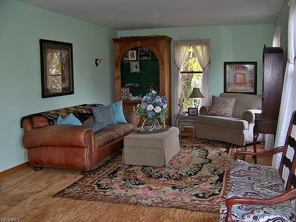 Mini farm-house, barn on 15.739 acres. 4 bedroom, 1 1/2 bath. Bedroom-hardwood floors and ample closets. Family room, paneled, beam ceiling, brick wall with wood burning stove, built-in shelves & bookcase. Kitchen, white cabinetry, built-in shelving, ceiling fan, stainless appliance. Formal dining room with chair rail and hardwood floor. 1st floor office. Updated half bath, beadboard, newer sink vanity, toilet & lighting. Enclosed porch. Finished lower level rec room paneled, glass block windows, lower level workshop & storage. 40 X 64 barn, loft, 2 horse stalls, metal roof. Newer horse fencing. Paddock. Circular concrete drive.