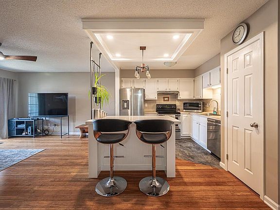 Open floor planInterior elevatorRemodeled kitchen with island