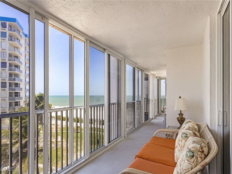 Live the coastal lifestyle you've been dreaming of in this beautifully updated end-unit condo on desirable south end of the island. This 2-bed/2-bath residence stands out with a massive L-shaped, wrap-around lanai—fully enclosed with impact-resistant glass sliders for year-round enjoyment. This impressive space adds 480 square feet of bright, versatile living area, making it ideal for entertaining, relaxing, or simply taking in the Florida sunshine. Step inside to a light-filled open floor plan where windows on three sides allow for gentle cross-breezes and abundant natural light. The kitchen flows seamlessly into the dining and living areas, all with views out to the expansive lanai. A deeded parking space in the garage beneath the building offers added convenience and protection for your vehicle. Enjoy direct beach access, or take a short stroll to nearby shops, restaurants, attractions, and the marina. Whether you're looking for a full-time residence, winter getaway, or income-producing rental, this condo delivers a perfect blend of comfort, style, and unbeatable location.