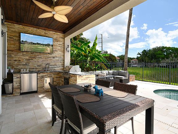 Step into your private lakefront backyard oasis, complete with a sparkling inground pool powered by a Jandy iAquaLink automation system, a full summer kitchen, and a travertine patio and walkways that wrap around the entire homefrom front to back. The exterior was freshly painted in 2024, offering beautiful curb appeal.