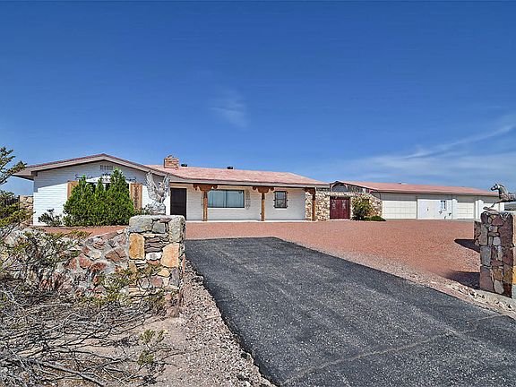 One of a kind property is situated on 2 acres with beautiful Organ Mountain views. Detached 4+ car garage with one being an RV garage has a wonderful built in shop area. the interior of the house has been well maintained and has a see-thru wood burning fireplace. The vaulted ceiling in the living room is wood as well as the floors. A large bonus room has a built in cabinetry and could be utilized for many uses.