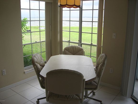 Amazing view of the Indian River from this move-in ready, 1st floor unit that's priced to sell. Light and bright with some great features including lots of natural light from the back windows, neutral tile throughout, updated cabinets and counters in kitchen and hall bathroom ceiling fans. There's a screened door on the front so you'll get wonderful breezes coming through in nice weather. Watch the spectacular sunrises or launches, go fishing from one of the community docks, sun or swim at one of two pools, or get your exercise on the tennis court. Close to shopping, dining, parks, and medical center. Watch launches from the dock or privately from your screened porch. Centrally located with easy access to major highways. This would be a great place for you to call home!
