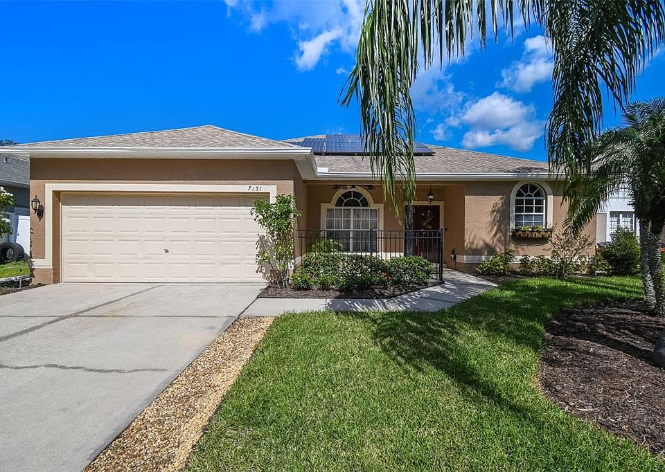 Experience luxury living in the highly desired community of Natures Hideaway with low HOA and no CDD. This upgraded home shows like a model that you are soon to fall in love with. At first look you'll notice the stunning tropical landscaping that adorns the property. Upon entry the open floor plan will immediately capture your attention. The luxury vinyl floors flow flawlessly into the common areas of the house. The well appointed kitchen showcases updated cabinetry, granite counter tops, luxurious backsplash, pendant and recessed lighting, stainless steel appliances, Rev a Shelf pull out shelves. The kitchen overlooks a spacious dinette area and large family room with access to the oversized screened lanai. The split floor plan offers an excellent layout for multi generational living providing privacy for everyone in the family. The primary bedroom serves as a luxurious retreat overlooking the tropical pool lanai and has an en-suite bath complete with rain head shower, multiple jets, hand held shower head and a garden tub with chandelier. The dual sinks are encased in custom cabinetry which provides plenty of storage. The opposite side of the home has 2 spacious bedrooms perfect for a home office with T1 line, guest room, craft room or an extra bedroom. The second bathroom has a new shower and vanity that leads directly out to the resort style pool area. The living room is the heart of the home and has a beautiful stone fireplace with mantel which is perfect for decorating for the holidays or displaying photos. The dining/living room combo offers an ideal setting for entertaining friends and family and has sliders that lead out to your private oasis complete with a waterfall that flows into the pool. Surrounded by lush landscaping, tall palms and beautiful foliage you can enjoy a tropical vacation right in your own backyard. The back yard which is fully fenced provides privacy and serenity and has a pool safety fence perfect for the safety of your pets and family. Upgrades include: newer roof (2020), newer dishwasher and garbage disposal (2022), luxury vinyl flooring (2022), stove and refrigerator (2021), Hot water tank (2022), AC fan motor (2024), AC UV bulb (2024), smoke detectors (2023), garage side door (2024), pool cage screen(2024), Pool motor (2024), rebuilt pool pump (2024), gutters, SOLAR PANELS paid off at closing. This home is conveniently located only minutes from the Pinellas County line, Trinity, Odessa, Tarpon Springs and the Suncoast YMCA, making it a short drive to shopping, restaurants, parks, wilderness trails, golf courses, hospitals, Tampa Airport and St Pete/ Clearwater Airport and top rated beaches. There are also top rated public, private, charter and magnet schools options in the area.