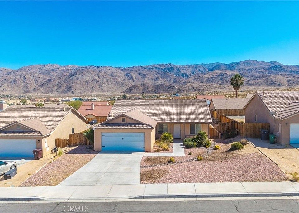 Gorgeous turn keyhome ready to be yours. Offered at $350k Sun Valley Drive is a four bedroom, two full bath home with a great entertainers backyard located in the desirable Chocolate Drop neighborhood of Twentynine Palms. New carpet in the living room and bedrooms and a fresh interior paint compliment the great layout. The kitchen is well appointed with a gas stove/oven, a dishwasher and a good sized pantry. The bedrooms are nicely sized as well with a large primary bedroom that boasts two walk in closets and an ensuite bathroom with dual vanity sinks. The living area has a cozy fireplace and really nice natural light coming in from the large windows. One of the bedrooms in the front of the home and would make for a nice office or studio. Some other nice attributes to the home are central heating and air and an energy efficient Mastercool swamp cooler, an abundance of storage, a separate laundry area within the home, the two car garage with finished walls, the big backyard with wood privacy fencing that looks out over the homes in back providing striking views of the mountains that are in fact the backside of Joshua Tree National Park, and the well maintained neighborhood that does not have HOA's.