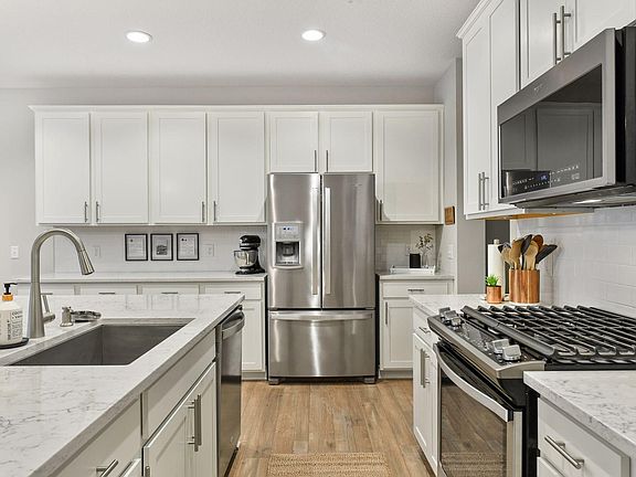 Light and bright open concept living within close proximity to groceries, major thoroughfares and all the shopping and restaurants that Maple Grove has to offer. White cabinets and upgraded Quartz countertops in the gourmet kitchen package including stainless steel appliances, soft-close cabinetry, additional storage pull-outs, and large pantry with ample storage shelves. Layout was expanded at the time of build ($22,500 upgrade!) to include an office/sunroom space on the main level and an expanded primary bedroom suite with double walk-in closets (both with closet systems added since purchase). Great neutral finishes and all the bells and whistles. Furnace humidifier and garage heater added since purchase. Almost-new construction with many upgrades including mudroom boat bench/storage hook addition, storage systems and components added in the home and garage. Better than new! More than $50k in builder upgrades plus additional upgrades since purchase!