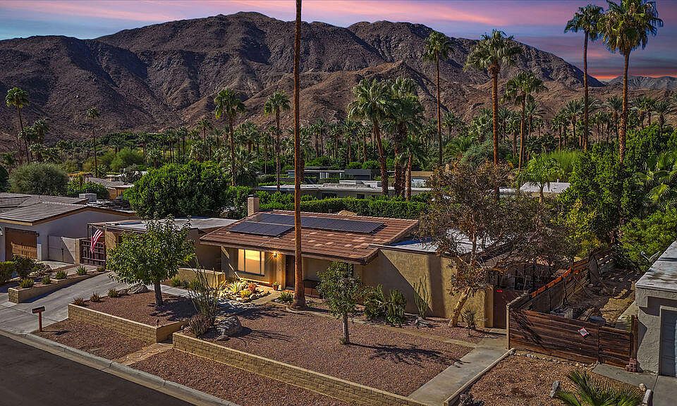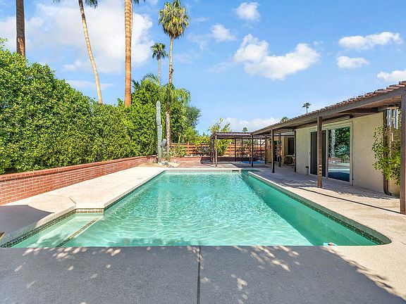 Welcome to Magnesia Falls Cove in Rancho Mirage - a community rich in charm, history, and stunning natural beauty, all with no HOA! Nestled in the heart of what's long been known as the ''Playground of Presidents,'' this classic 1970s home offers the perfect blend of mid-century character and modern comfort. Enjoy your own private backyard oasis featuring a spacious pool, separate spa, and breathtaking mountain views -- ideal for everyday relaxation or entertaining. With three bedrooms, the primary suite opens directly to the outdoors and spa area, inviting you to soak in the serenity. The living room centers around a cozy fireplace, adding warmth and personality to the open layout. Move in and enjoy immediately or use this as the perfect backdrop for your dream mid-century remodel. The home boasts upgraded windows, a newer HVAC system, and leased solar for energy efficiency. An extended garage with power upgrade for an Electric Vehicle, and a built-in workbench is perfect for hobbies or storage. The long driveway provides plenty of additional parking. The backyard has ample room to add an ADU or casita for guests or rental income potential. Currently there is a outdoor storage shed built on foundation for extra storage. Rancho Mirage is renowned for its Hollywood and presidential ties, world-class medical care, cultural attractions, top-rated dining, and some of the best hiking in the Coachella Valley -- all just minutes away. Don't miss your chance to own a slice of Magnesia Falls Cove, where location, views, and timeless charm come together.