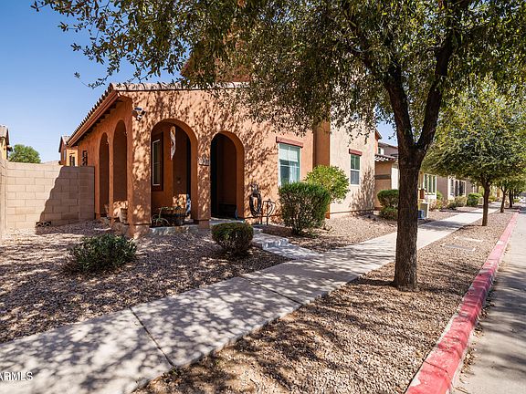 Discover this charming 2-story gem located in Rogers Ranch! Step inside into cozy & inviting floor plan with abundant natural light. Lower level has hardwood & tile flooring, large kitchen Island, ample counter space & Powder Room. Stairs invite you up to the Primary Bedroom that offers dual sinks and walk-in closet. Both upstairs bathrooms updated 2022. Laundry room is conveniently located upstairs. Exterior painted & yard irrigation replaced in 2022. Excellent recent roof inspection. Washer, Dryer, Refrigerator, R/O & misting system convey. This well cared for home has one of the largest yards & most spacious driveway available in Redhawk at Rogers Ranch! HOA fees include exterior water & landscaping. Community amenities include a pool, playground, walking paths & more! Located near schools, parks, dining & shopping.