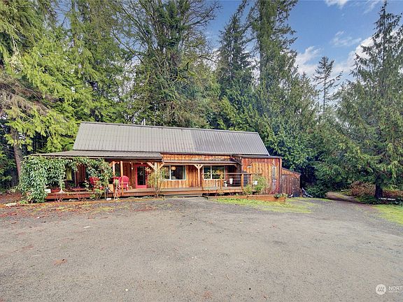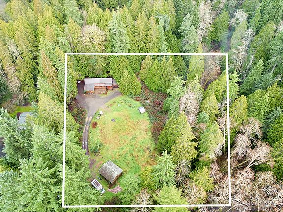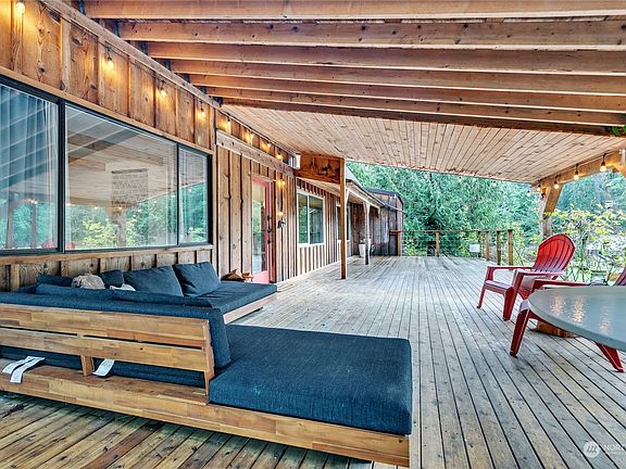 Everything about this says BAINBRIDGE.So much charm in this custom built cabin on 2.39 acre lot w/short-term rental "glamping" outbuilding w/composting toilet & oversized detached garage This highly functional 2 bedroom & 1 bath cabin boasts so many touches that amplify its character like the hardwood flooring & siding was all milled from the lot! The indoor-outdoor space makes the home feel so much larger than it is w/over 784 ft of deck! The Airbnb is as cute as can be w/an outdoor tub making $30k+ per year & has been featured in many travel blogs! Looking to build your dream home? The Sellers have done majority of the work w/the City wetland reports, building envelope & building plans! A true OASIS just minutes from the Ferry & Downtown