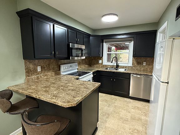 The home comes with everything you need: TV, fridge and freezer, microwave, oven, dishwasher, grill, bistro table and chairs, barstools, and a futon. Washer and dryer can stay if you'd like. It's move-in ready and has a warm, welcoming feel.