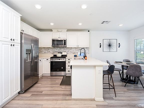Get ready to fall in love with Unit 403 on Citrus, a stunning, upgraded three bedroom, two and a half bath residence that perfectly blends modern comfort with community living. Located in the sought after, gated community of The Towns at El Paseo, this isn't just a condo; it's a lifestyle! Inside, an open floor plan that flows beautifully, making it ideal for entertaining and daily life. The heart of the home, the chef-inspired kitchen, boasting sleek quartz countertops, an eye-catching upgraded tile backsplash, and an impressive amount of cupboard space for all your storage needs. New, modern flooring runs throughout, creating a seamless, high-end feel, and enjoy the massive benefit of an existing solar lease, offering significant energy savings, coupled with an in-garage EV charger!. Relaxation awaits in the huge primary suite, a true retreat offering ample space and privacy. The two nicely sized secondary bedrooms provide flexibility for guests, a home office, or a growing family. Location is everything, and this unit delivers: it sits directly in front of the community's beautiful picnic green area, which includes a covered patio sitting area perfect for parties and gatherings. The gated community elevates your living experience with exceptional amenities: take a dip in the sparkling pool, unwind in the spa, host events at the clubhouse, or watch the kids enjoy the playground. This residence is a perfect opportunity for buyers seeking modern upgrades, low-maintenance living, and desirable community features. Don't miss out on this incredible home! You are minutes from amazing shopping and dining near Sierra Lakes, the 10 and 210 freeways, and Victoria Gardens, Rancho Cucamonga's premier shopping, dining, and entertainment hub.