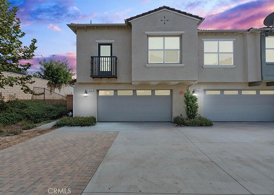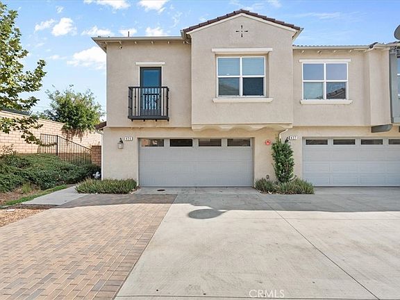 Check out this end-unit with one of the largest side yards! This semi-attached townhouse is located in the gated community of El Paseo, where you can enjoy resort-style amenities including a pool, spa, recreation center, and tot lot. This two-story home offers a spacious living room, dining area, large kitchen, and a convenient half bath on the main floor. Upstairs features a loft with a balcony, a primary bedroom with an en suite bathroom including dual vanities and a walk-in closet, two additional bedrooms, a hall bath, and an upstairs laundry room. Additional highlights include a two-car garage with direct access, luxury vinyl flooring, recessed lighting, and energy-efficient appliances. Ideally located near major employment centers, Ontario International Airport, and the Victoria Gardens Outdoor Mall.