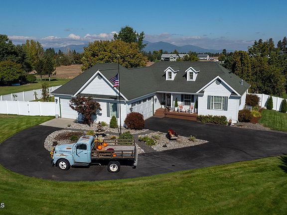 Country farm in the heart of Post Falls! Welcome to this immaculate, beautifully remodeled 5 bedroom, 3 bathroom home with main floor primary suite. Bring your toys and tools because there will be ample space in the 50x80 heated shop with enclosed lean-to's, bathroom, and epoxy floors. To the North and East of the home there is a 2 stall barn with tack room, corral and pasture, all fully fenced and ready for your horses and goats! Enjoy the views of the Rathdrum mountains from your covered back patio that looks over a fenced backyard that has landscape lighting, garden with garden beds, a greenhouse, chicken coop with enclosed run, and manageable, private grassy backyard.