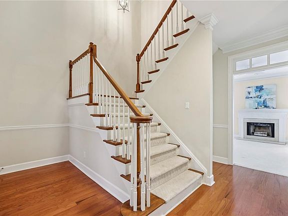 This elegant 2-bedroom, 2.5-bath end-unit townhome in Sandy Springs' gated Wyngate at Spalding community offers single-family-style living with Georgian architecture. Located minutes from the Sandy Springs City Center, it features hardwood floors, a gourmet kitchen with stone countertops and center island, and a living area with gas fireplace opening to a private deck. The primary suite includes a walk-in closet and ensuite with dual vanities, soaking tub, and shower; the secondary bedroom has a large closet and full bath. A bonus room suits a study or storage. Additional outdoor space features fenced backyard and an oversized deck off of the living room. Amenities include a pool, tennis, pickleball, and exterior maintenance. Near shops, dining, Downtown Roswell, Sandy Springs City Center, schools, GA 400, and I-285. A great opportunity in the center of Sandy Springs!