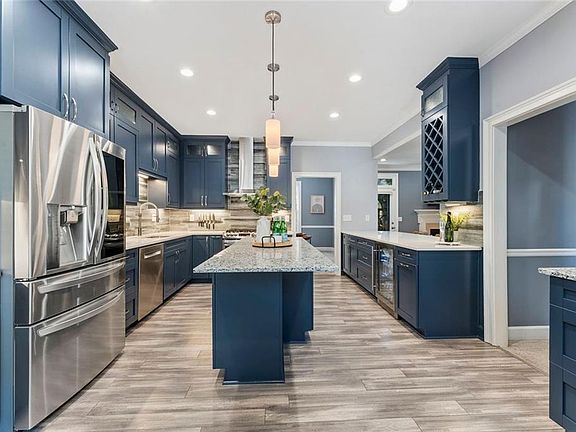 Private fenced backyardHigh-end finishesSpacious islandOversized two-car garageNatural stone heated floorsThree-level brick homeArchitectural details