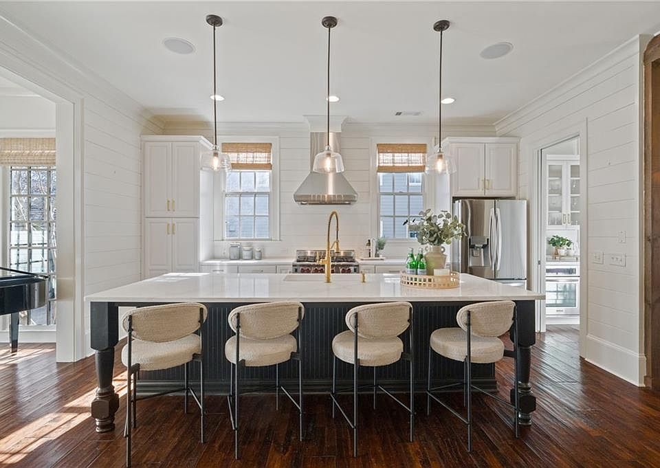 High ceilingsLarge central islandExtensive trimUpgraded hand-scraped hardwood floorsTall baseboardsGrilling areaMudroom with custom cabinetry