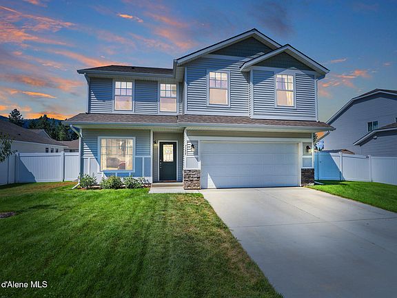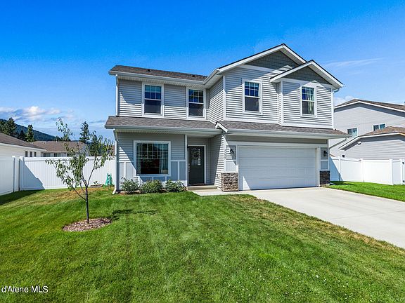 Welcome to this stunning 4-bedroom, 3-bathroom home, perfectly situated on a quiet cul-de-sac in one of Rathdrum's most desirable neighborhood! This better-than-new home offers a bright and airy open floor plan, featuring luxury LVP flooring, quartz countertops, and a chef's dream kitchen with a spacious island, gas range, and a pantry for all your storage needs. Relax in the cozy living room by the gas fireplace, or retreat to the large primary suite with dual vanities and a walk-in closet. The additional den/office provides extra flexibility, perfect for remote work or hobbies. The oversized backyard includes a large covered patio and a garden, creating a peaceful outdoor escape. Located just moments from local schools and parks, this home is a must-see for those seeking modern living in an up-and-coming town!