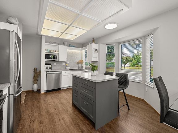 New flooringModern kitchenCloset organizersHot water tankBright layoutLarge walk-in closetBay window