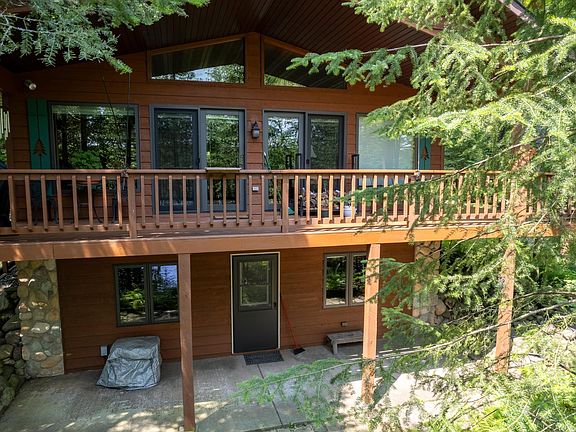 Absolutely pristine, impeccably maintained and updated walk-out ranch centrally located on serene Hiawatha Lake. Custom built with absolutely everything you need. From the moment you walk in, the craftmanship shows. Open concept kitchen with Hickory cabinets and cathedral ceilings in the great room with a stone WB fireplace. Expansive covered porch perfect for viewing the abundant wildlife. Two generous bedrooms and a large full bath. Open staircase to enormous recreation room with gas stove, walkout to a patio, full bath and huge storeroom. Hand crafted built in murphy bed make this a great option for out of town visitors. Not one, but two insulated and heated garages (one with a woodburning furnace, and one with a thermostat) give you abundant room for all of your Northwoods toys. New Furnace, water heater. Newer roof. Stop by and see this beauty today!