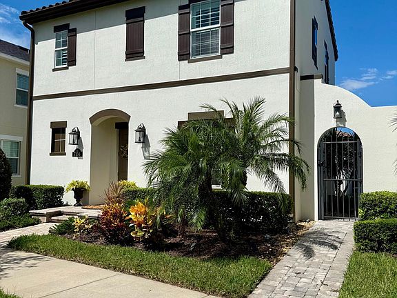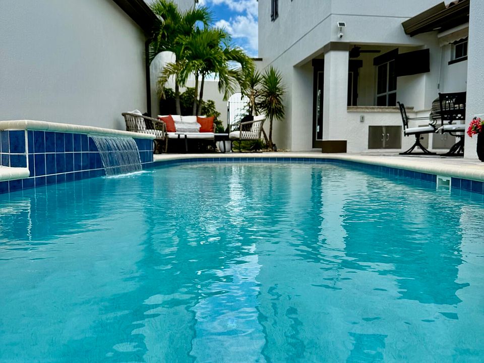 Incredible opportunity and priced to sell!! Move stress free in your FULLY FURNISHED tropical oasis in the heart of Viera! This rare end-unit features a private courtyard with heated saltwater pool, LED lights, and waterfall for ultimate relaxation. The resort-style summer kitchen offers a gas grill, wine fridge, bar seating, retractable awning, and TV mount—excellent for entertaining! The primary suite is on the main level, with two ensuite guest rooms upstairs. Enjoy carefree living with HOA-maintained lawn and exterior painting. Stroll to The Duran Golf Course for a round of golf, The Avenues for a movie, dining or shopping, and coming soon -the Viera Town Center Park Amphitheater for live outdoor concerts and events. Need vitamin sea? The beach is just 13 miles away. This gem is more than a home-It's a lifestyle!