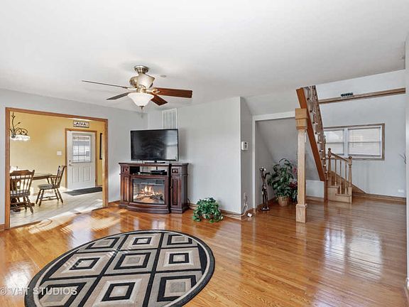 If space and style are priorities, you'll want to see this lovely 5-bedroom, 4-bath two-story Bridgeview home with lots of homework-station or home-office options! This flexible interior layout features hardwood floors throughout and a large eat-in kitchen w/ ample dining space. Two main-floor bedrooms plus a spacious upstairs owner's suite w/ double sinks and whirlpool tub, and two additional 2nd-floor bedrooms. Light-filled open stairwell leads to upstairs sitting area with dramatic vaulted ceiling. Separate main floor/upstairs HVAC systems for efficiency, sprinklers for fire safety, and a NEW ROOF! Outside, enjoy the sweeping front lawns of a corner lot, 2.5-car garage, and a huge driveway that can hold at least 4 cars. Make this one yours today!