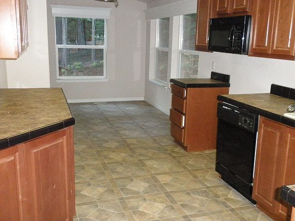 Surrounded by majestic Heritage pine trees, this 2005-built manufactured home has an open and bright floorplan, spacious bedrooms and a large kitchen with nice cabinets and a breakfast nook. The great room offers vaulted ceilings and a wood stove to keep you cozy in the winter. Over a third of an acre parcel with a large usable backyard.