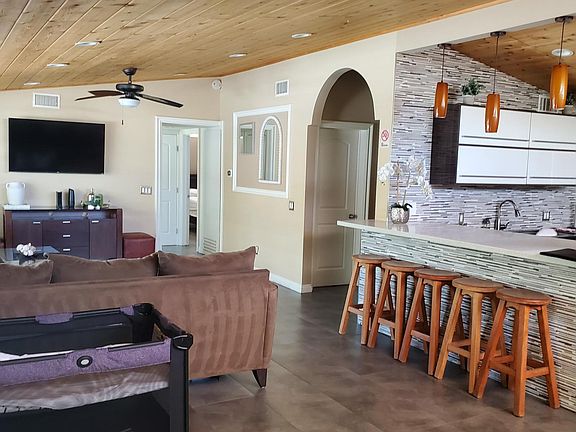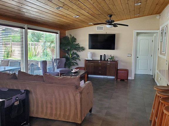 Welcome to this beautifully remodeled 2-bedroom, 2-bathroom home, designed for comfort, style, and effortless entertaining. Step into a private backyard oasis featuring a sparkling pool, expansive covered patio, and breathtaking mountain viewsa "perfect for relaxing or hosting guests. Inside, you'll find a fully tiled interior with an airy open-concept layout, accentuated by clerestory windows that flood the space with natural light. The chef-inspired kitchen showcases gleaming quartz countertops and seamlessly connects to the dining and living areas, all with direct views of the backyard.