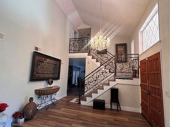 Hillcrest Estates Community! features this beautiful 5 bedroom 3 bathrooms, Entry has a beautiful Crystal Chandelier, laminate flooring throughout with wrought iron staircase. Main level floor features 1 bedroom , 1 bath, formal living room formal dining, laundry room, granite kitchen countertops, open to family room, shutters on windows. Upstairs features deck on Master bedroom over looks the swimming pool and 3 additional bedrooms, and 2 bathrooms, long private driveway RV parking 3 car garage. The backyard features private swimming pool, jacuzzi, large property space available for a ADU, Very private and quiet neighborhood close to shopping center.