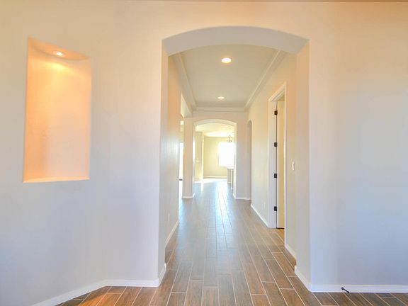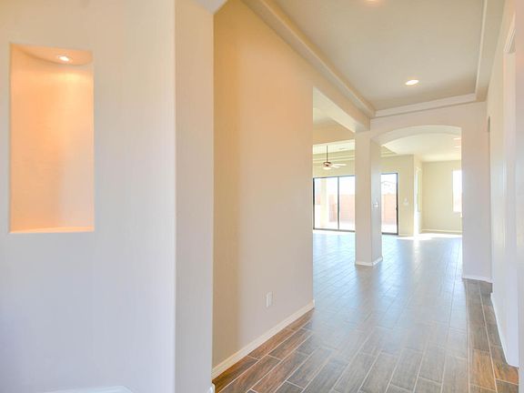 Stunning Tuscan single story home by Hakes Brothers located in the Trails neighborhood! Home features 2,356 sf with 4 bedrooms, 3 full bathrooms and 3 car garage! Beautiful wood tile throughout the main living areas. Spacious great room with custom trayed ceiling. Open kitchen with upgraded charcoal cabinetry, granite countertops, backsplash, gas cooktop, built-in wall oven/microwave, center island with seating space, pantry and dining area. Gorgeous master suite with private entry hall and bath. Bath hosts a walk-in shower with tile surround, dual sinks and a huge walk-in closet. 3 additional gust rooms with plenty of space. Outside enjoy the covered patio and private backyard. Come see what the Hakes Brothers has to offer!