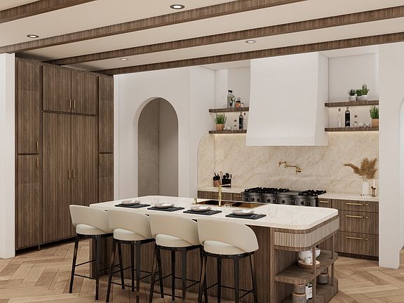 Sparkling poolCovered balconyPrivate backyard oasisSpiral staircaseNatural lightCorner lotExpansive island