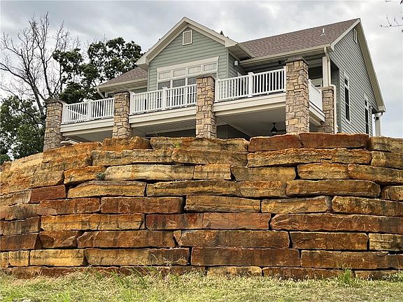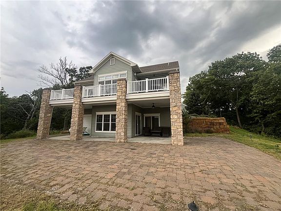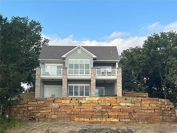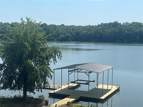 Enjoy lake life just over a one hour drive from Southern Johnson County. This premier 4 bedroom, 2 1/2 bath, 12 year old home is on beautiful Lake Fort Scott. The one-half acre secluded lot is surrounded on each side by protected wooded areas. The house has 12' ceilings and recessed lighting on both levels, custom shades, sliding doors from all the rooms facing the lake, and custom built cabinets in the kitchen. All appliances stay including a washer/dryer. This top of the line home offers everything you would ever want with breathtaking lake views from almost every room including the main level composite deck and lower level patio. Home is located in a peaceful fishing area/no wake zone. The oversized (1000 square foot) drive-through detached garage can store your pontoon boat, car and water toys with room remaining for a work area. The garage is insulated, has running water, a floor drain, and an attic room running the entire length. House is total electric but propane gas tank available on property. The new covered dock includes a low water lift and a dual floating jet ski dock. The rock retaining wall was rebuilt in 2021. Lake Fort Scott is a 360 acre lake offering outstanding fishing and recreational boating. Whether you are wanting peace and tranquility, beautiful views, water sports, and/or entertaining, this home is ready for you and your family to move into today. Property has an annual $150 frontage fee and a monthly sewer assessment fee paid to the city. While every attempt has been made to ensure accuracy, all measurements are approximate, not to scale. The floor plan is for illustrative purposes only.