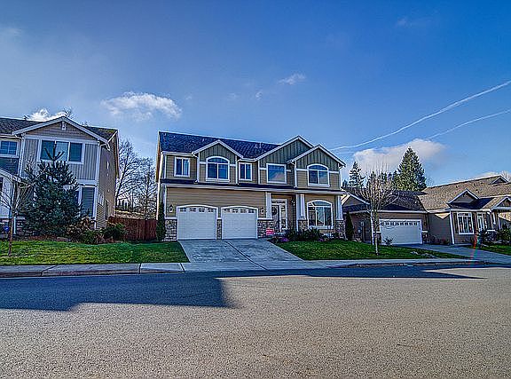Handsome 3 Bedrm Home w/2 Large Bonus Rooms. Open living on Main Floor has amazing kitchen w/real hardwood floors, large eating bar & extensive cabinets. Home features white millwork, window blinds, 5 piece Master bath, double sinks, & large bonus room has closet for 4th bedroom. Enjoy your maintenance free yards (maintained by HOA), underground sprinklers, fully fenced yard & deck overlooks one of the larger lots. Just 5 min. from shopping, Hospital, Sounder & Park-n-Ride. 2% Buyers Bonus!