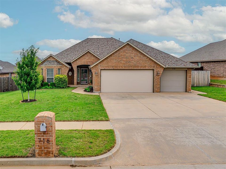 SOLD BEFORE LISTING, ENTERED FOR COMPS. Don’t miss this beautifully maintained 4-bedroom, 2-bath Energy Star-rated home in sought-after Chisholm Crossing! The flexible floorplan includes a fourth bedroom that works perfectly as a home office or study. You'll love the open-concept layout featuring a cozy gas fireplace, motorized window coverings, and a spacious kitchen with ample storage and a large island. The private master suite offers dual vanities, a jetted tub, and a generous walk-in closet with built-ins. Step outside to a large covered patio, a nicely stained fence, and a backyard with plenty of space to play or entertain—plus a storage shed for extra convenience. The 3-car garage includes an oversized in-ground storm shelter, and the home also features a sprinkler system, full gutters, and a large decked attic. New carpet was installed in 2023. Located on a quiet cul-de-sac street with access to amazing HOA amenities including a splash pad, two parks, basketball court, and a neighborhood pond!