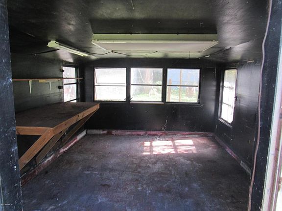 Only 1 bedroom confirms,bedroom 2 does not offer a closet.Lots of space with frt living rm,eat in kitchen area and enclosed rear porch.Larger back yard with detached shed and carport.