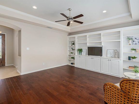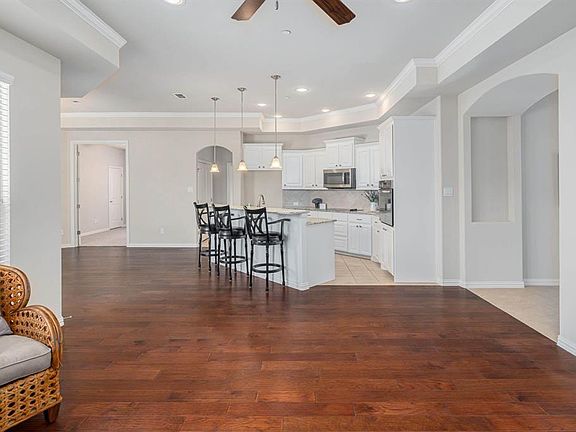 Detached Condo-Villa located in the 55+ GATED community of Villas of Stone Glen. Lock & leave! Community features include all exterior maintenance, yard maintenance, a clubhouse with community pool, covered pavilion with built-in grills, walking paths, & fitness center. Light & bright open floorplan! Living room with beautiful cabinetry, and is open to the kitchen with granite countertops, breakfast bar, SS Appliances including built-in microwave. The stove can be gas or electric. This home features split bedrooms, French doors lead to the study with closet - could make a great 3rd bedroom! Master bedroom with tray ceiling has ensuite bath with dual vanities and walk-in shower. Enjoy lots of great features including crown molding, rounded corners & archways, separate laundry room with sink, and wood floors throughout main living areas. Roof replaced in March 2022!