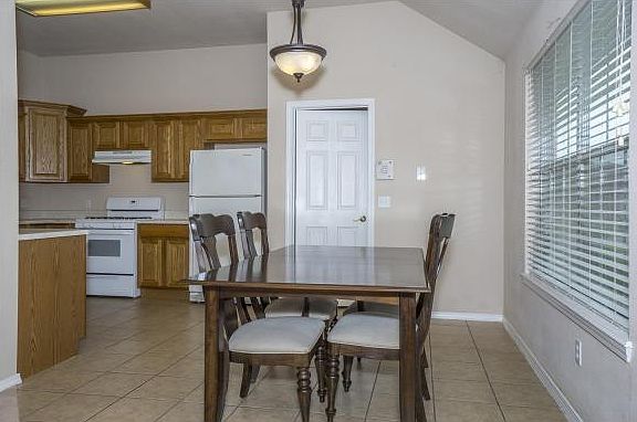 Nice open plan that flows from living room to dining and also open to kitchen. Lots of family conversation.....master bedroom is split and has large double sinks and a separate garden tub and ceramic tile shower. Nice landscaping, fenced and a covered patio. Just steps away to the Middle School.